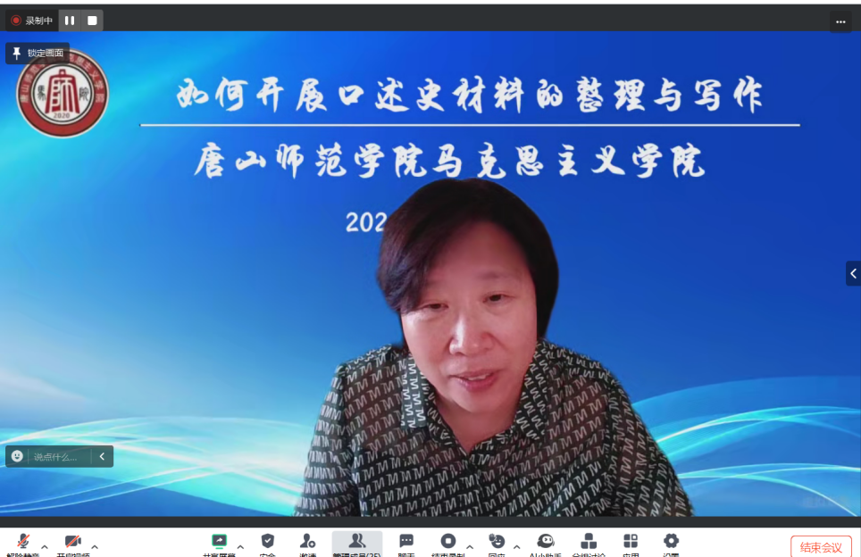 为全面贯彻党的二十大精神,提升马克思主义学院教师科学研究能力,促进马克思主义学院学科发展。6月23日,马克思主义学院邀请中国社会科学院当代中国研究所研究员姚力在线上腾讯会议做关于“如何开展口述史材料的整理与写作”的学术讲座。讲座由马克思主义学院执行院长宋晓敏主持。