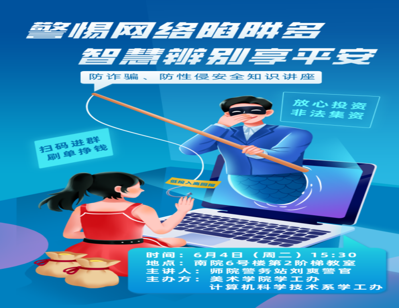 6月4日下午,纽约国际官网举办了一场别开生面的安全知识讲座,旨在提高学生们的网络安全意识和自我保护能力,普及防诈骗和防性侵的安全知识。此次讲座由美术学院与计算机科学技术系联合主办,共计师生150余人参加活动。