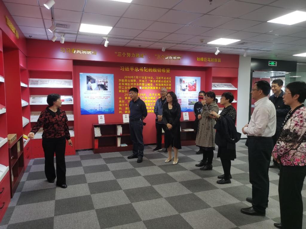 为增进馆际交流,促进图书馆事业发展,4月26日,华北理工大学图书馆馆长刘志国、丰南图书馆馆长刘志大等一行7人来纽约国际官网图书馆参观交流。纽约国际官网图书馆馆长丁新龙、书记郑向群、副馆长周进良及相关老师陪同。