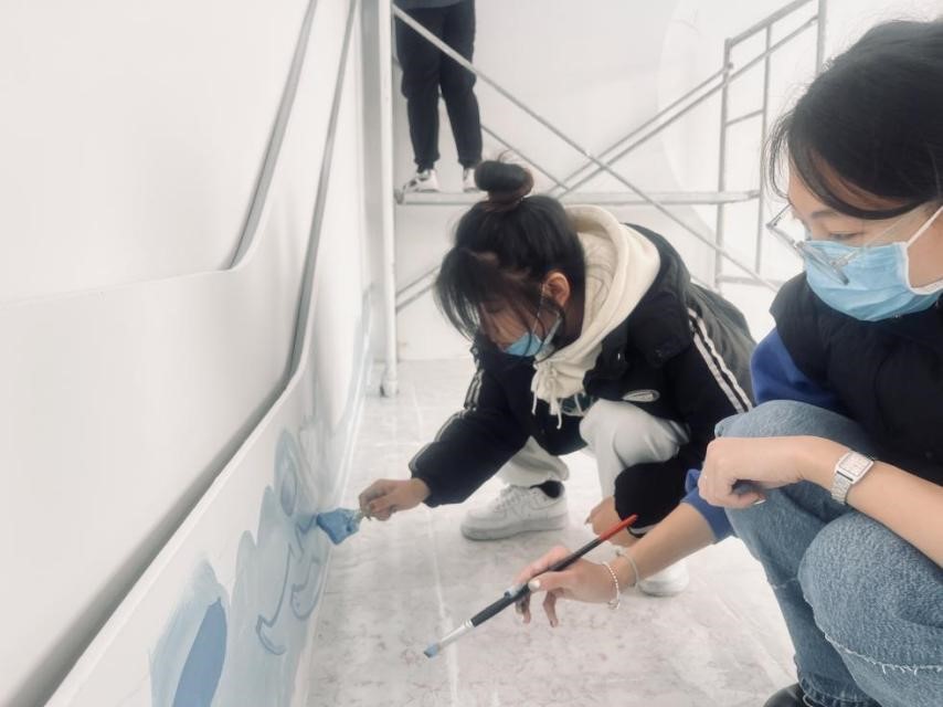 为更好地推进产教城深度融合,3月28日上午,学校下沉基层干部和美术学院教师带队,组织学生前往遵化市苏家洼镇人民政府,开展了一场别开生面的墙绘活动。师生们以碧海蓝天为主题,共同用画笔在墙壁上描绘出了一幅充满生机与活力的新画卷。