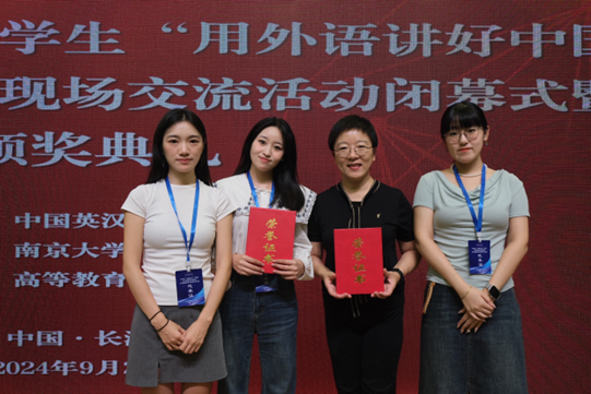 9月27-29日,由中国英汉语比较研究会指导,南京大学、湖南大学主办,高等教育出版社协办的2024年“高教社杯”大学生“用外语讲好中国故事”优秀短视频现场交流活动在湖南大学举办。由纽约国际官网张蔚东、何利娟老师指导,来自外国语学院2020级的安思淼、张梦萱、万秀兰、李子笑共4名同学完成的作品《唐影遗风续华章》在获得河北省赛特等奖之后,参加在湖南大学举办的全国赛,并斩获一等奖。