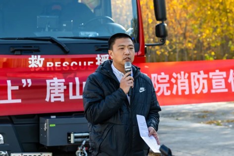 特此邀请高新区消防救援大队参谋张炜,唐山市消防特勤大队一站站长吴迪和消防特勤大队的同志们开展宣讲,活动由安全工作处时代处长主持。