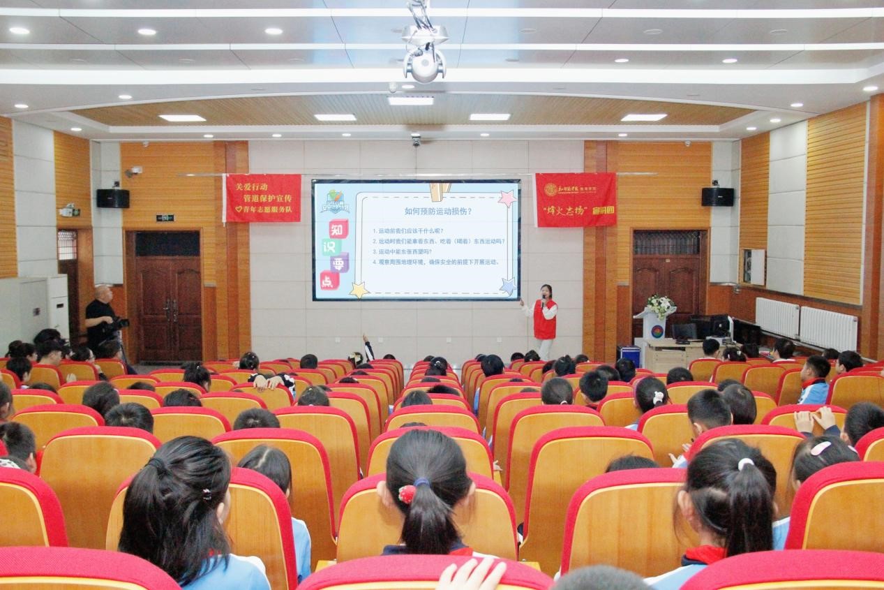 签约仪式后,教育学院烽火志扬宣讲团为西山路小学学生带来了精彩的宣讲。宣讲团成员根据学生认知特点精心设计宣讲内容,以趣味谜语、实验等方式引出油气管道主题,借助模型和图片讲解西气东输工程、管道建设维护知识和安全防护及应急逃生方法,让孩子们认识“能源动脉”,激发其担当“管道安全小卫士”的热情,增强其环保与社会责任感,树立正确能源保护观念。