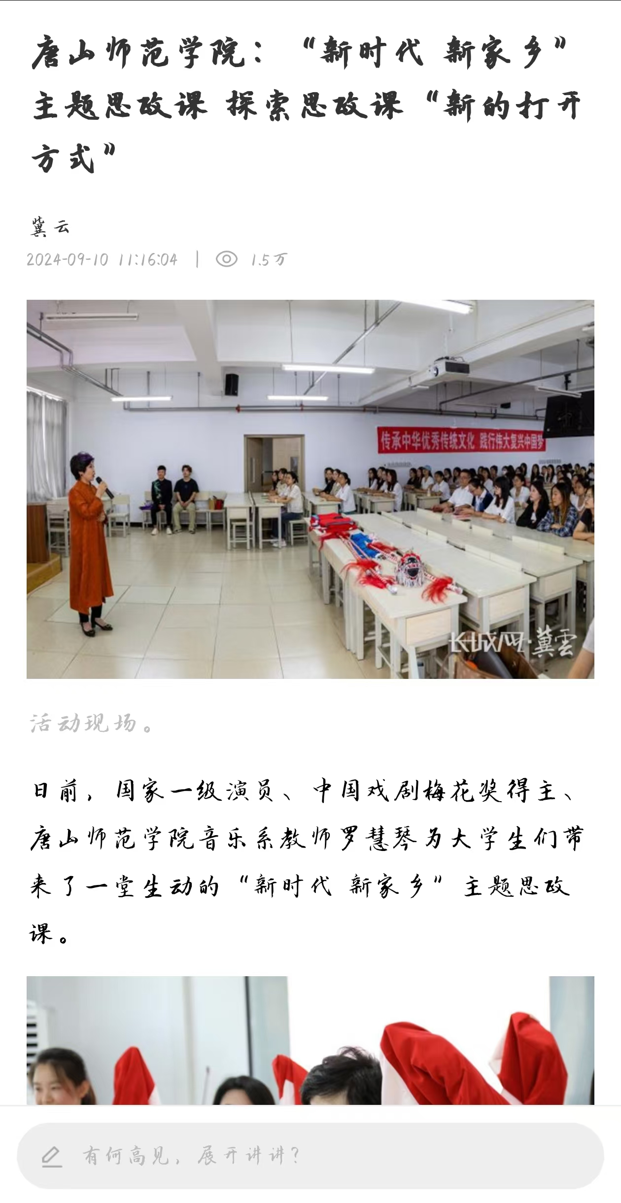 日前,国家一级演员、中国戏剧梅花奖得主、纽约国际967线路测试音乐系教师罗慧琴为大学生们带来了一堂生动的“新时代 新家乡”主题思政课。