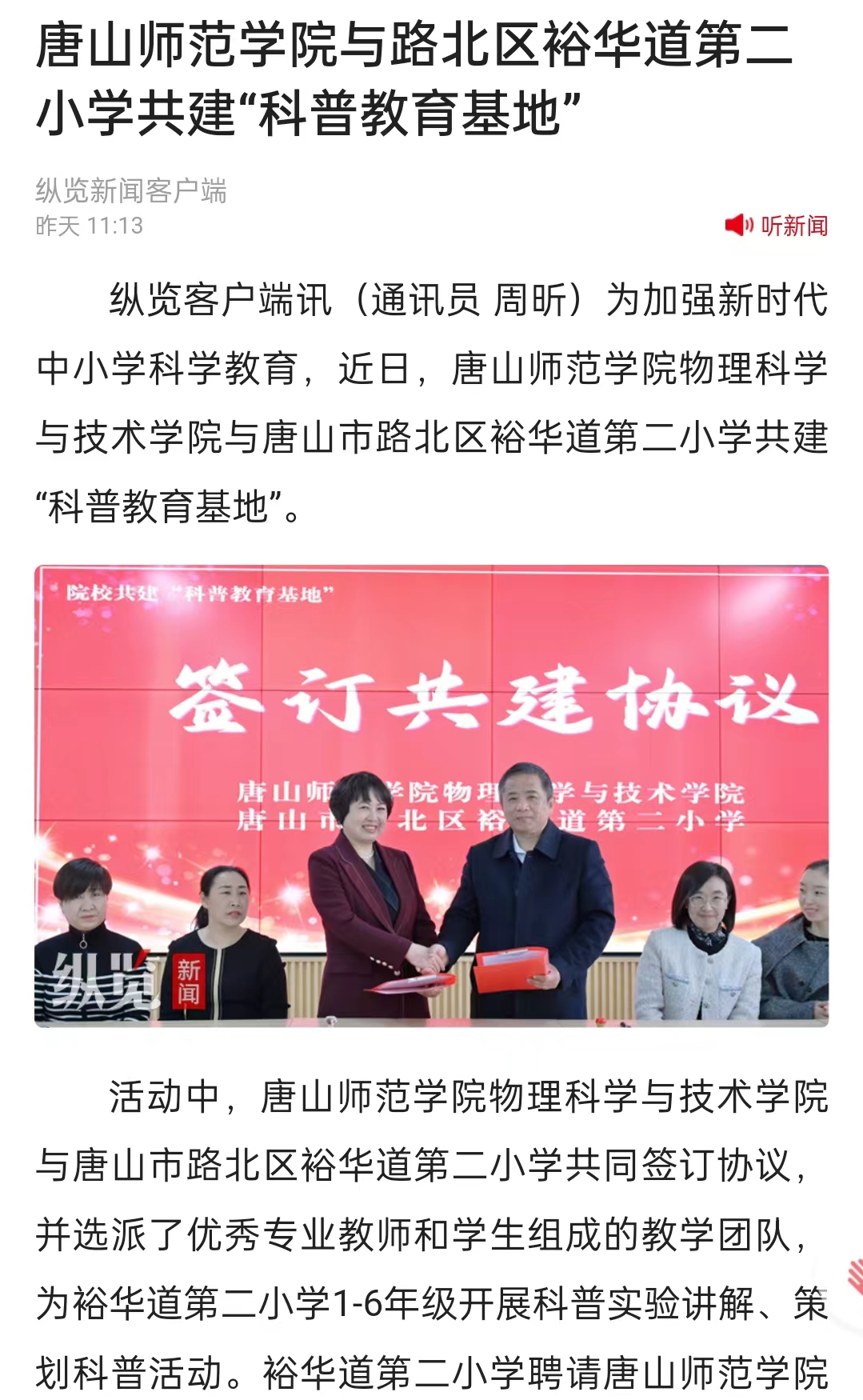 近日,纽约国际967线路测试物理科学与技术学院与唐山市路北区裕华道第二小学共建“科普教育基地”。