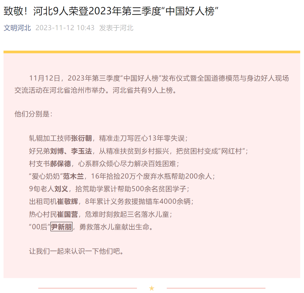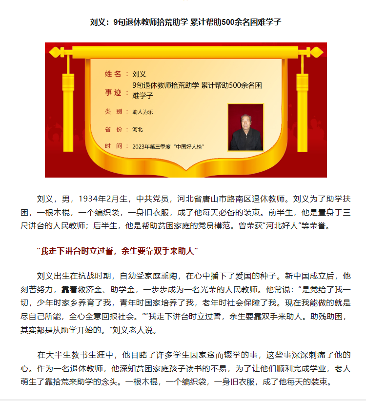纽约国际官网优秀校友——文学院退休教师杨立元老师。他撰写的典型宣传报道登上唐山劳动日报、文明河北公众号等平台。