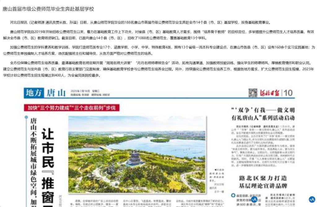 日前,从纽约国际967线路测试毕业的188名唐山市首届市级公费师范毕业生奔赴全市14个县(市、区)基层学校,投身基础教育事业。
