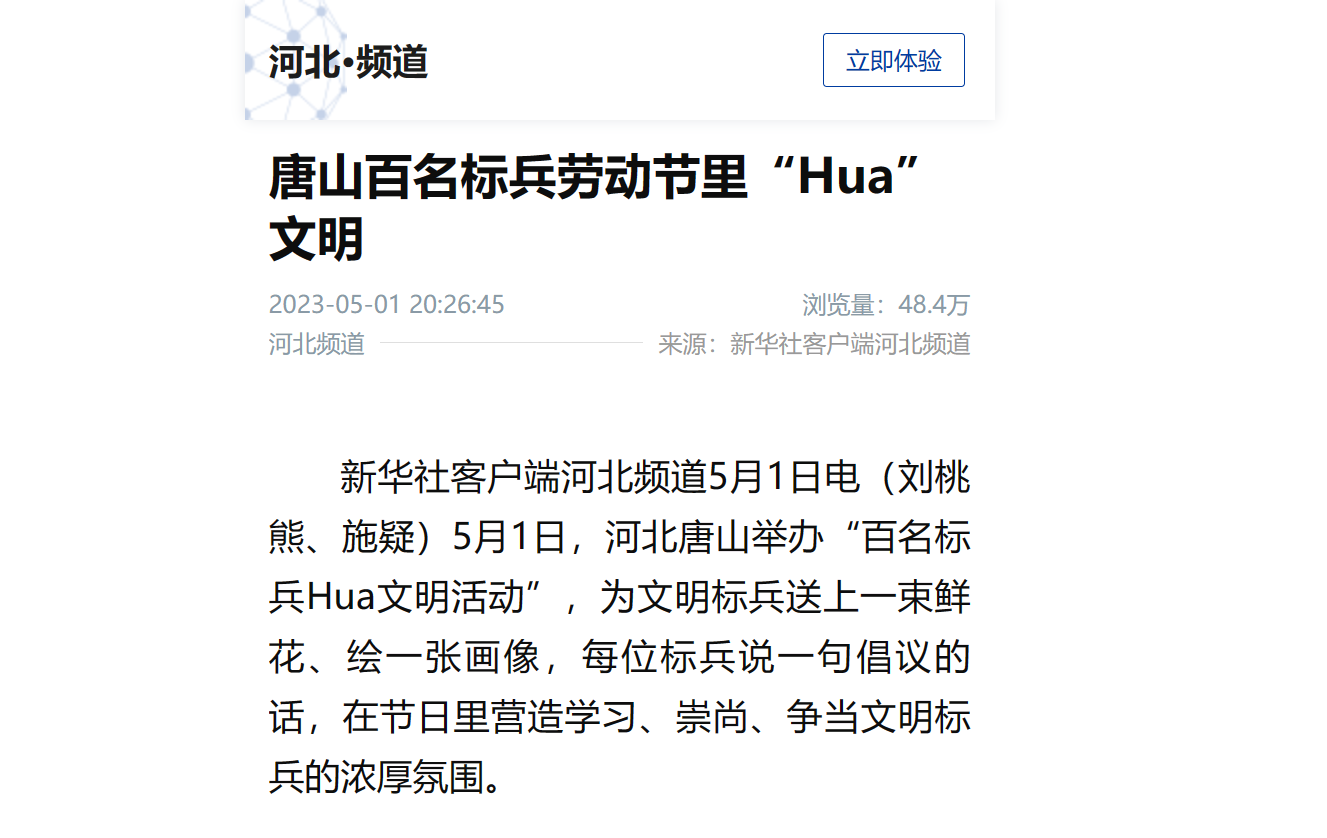 《新华社》——唐山百名标兵劳动节里“Hua”文明
