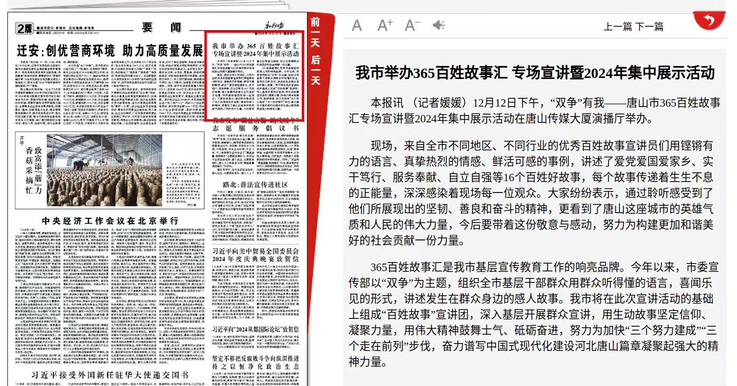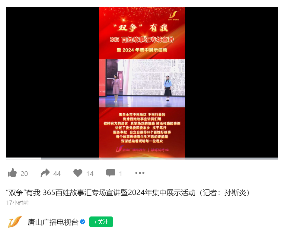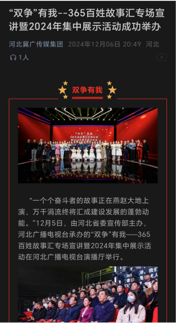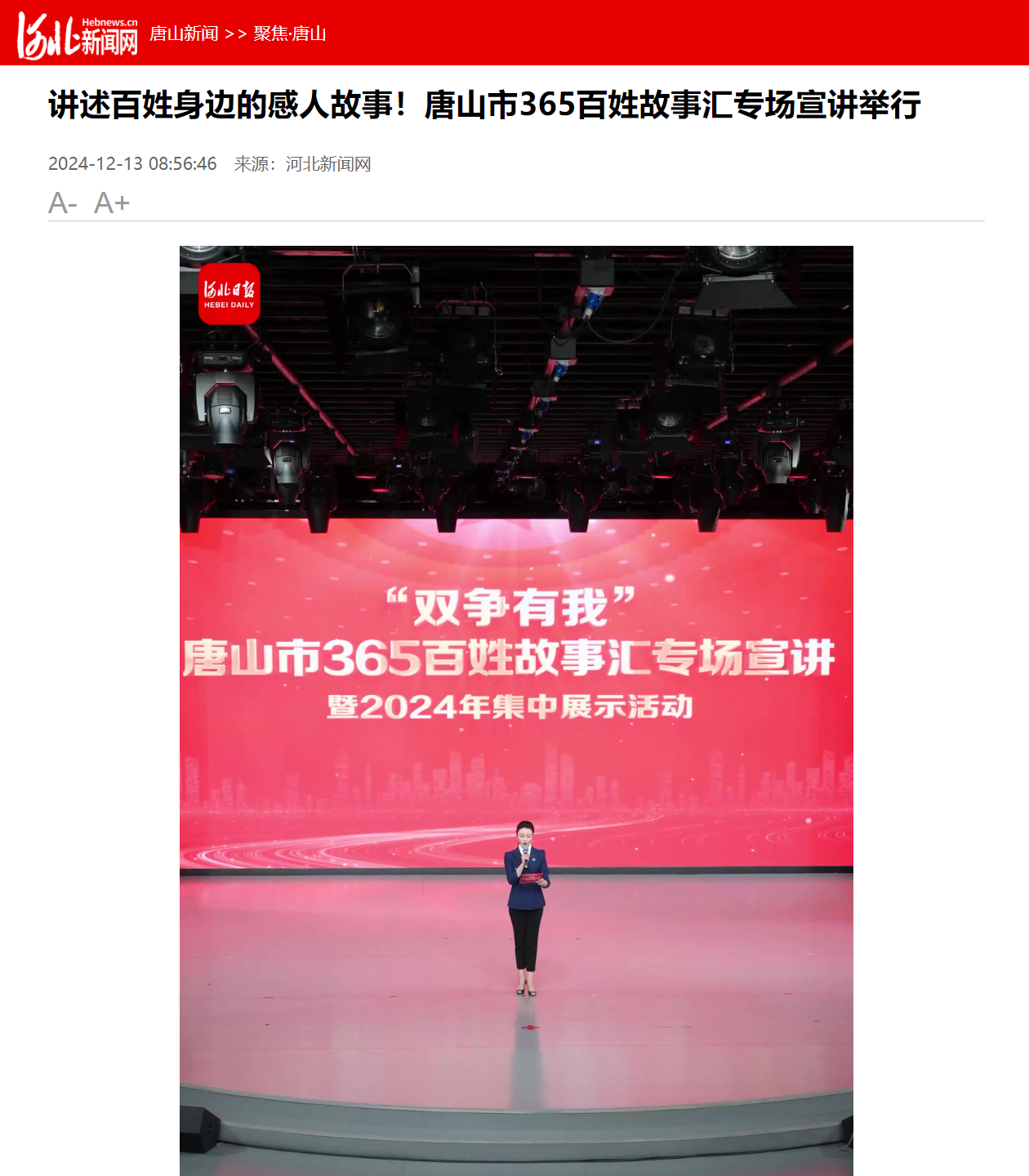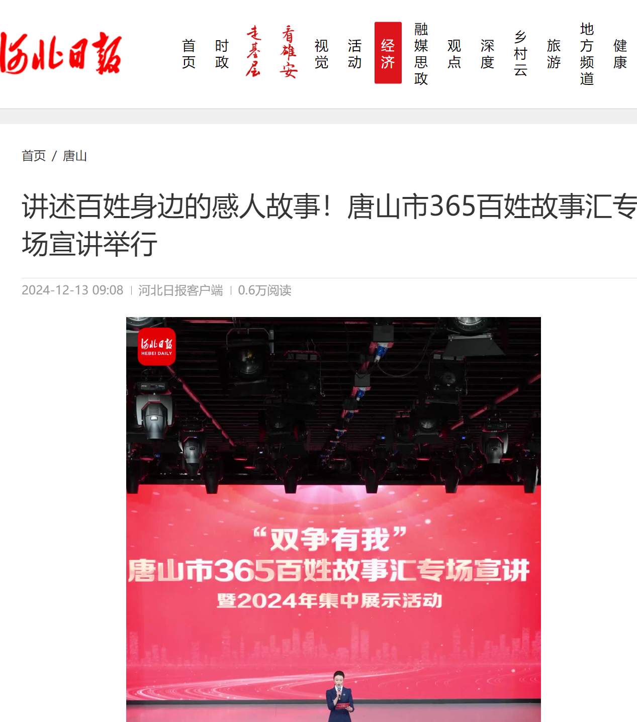12月12日,“双争”有我——唐山市365百姓故事汇专场宣讲暨2024年集中展示活动在唐山传媒大厦演播厅举办,纽约国际官网宣讲员参与此次活动。