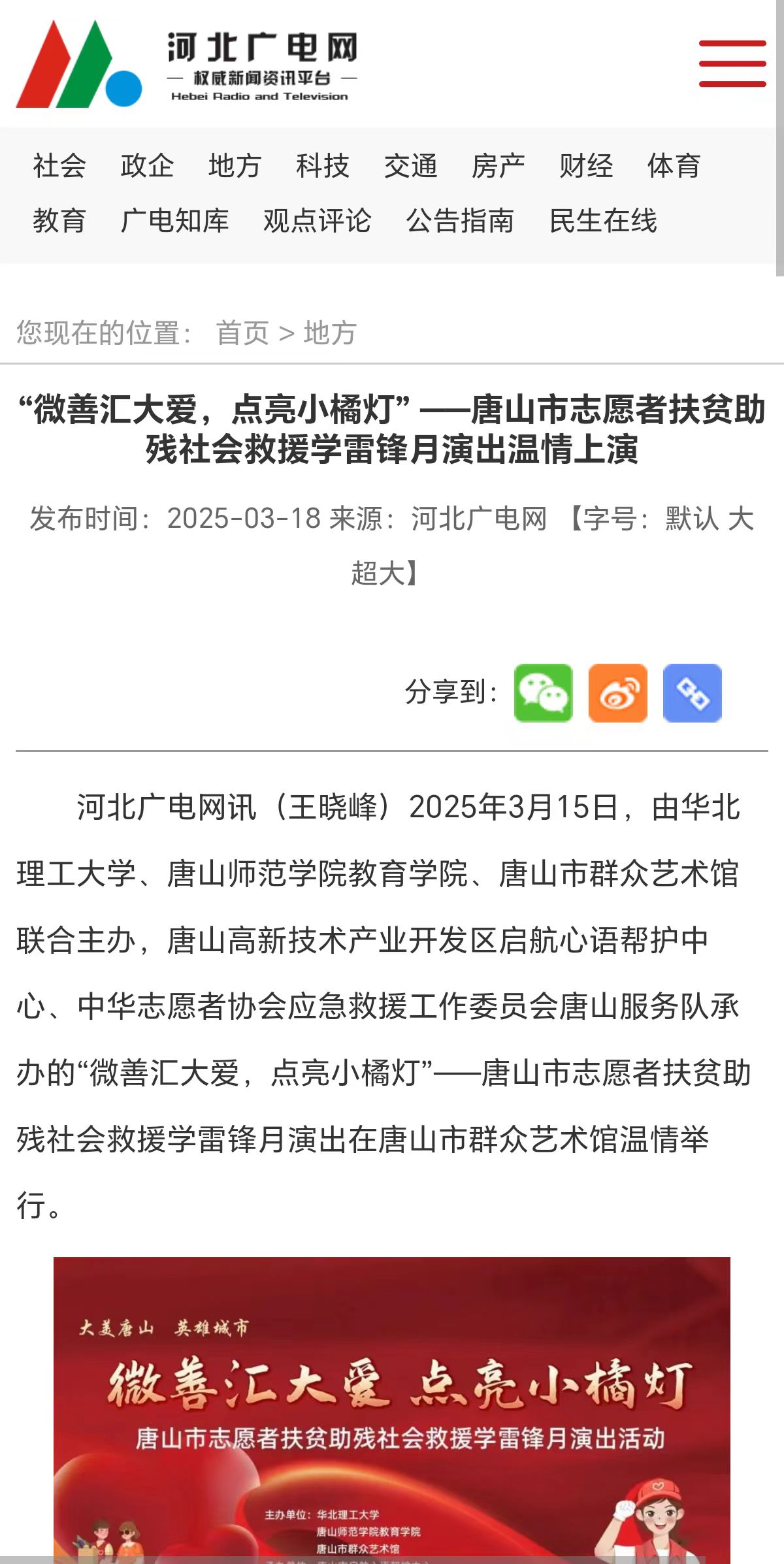 3月15日,“微善汇大爱 点亮小橘灯”唐山市志愿者扶贫助残社会救援学雷锋月演出活动在唐山市群艺馆举行。此次活动由华北理工大学、纽约国际967线路测试教育学院、唐山市群众艺术馆主办,唐山市启航心语帮护中心、中华志愿者协会应急救援工作委员会唐山服务队承办。