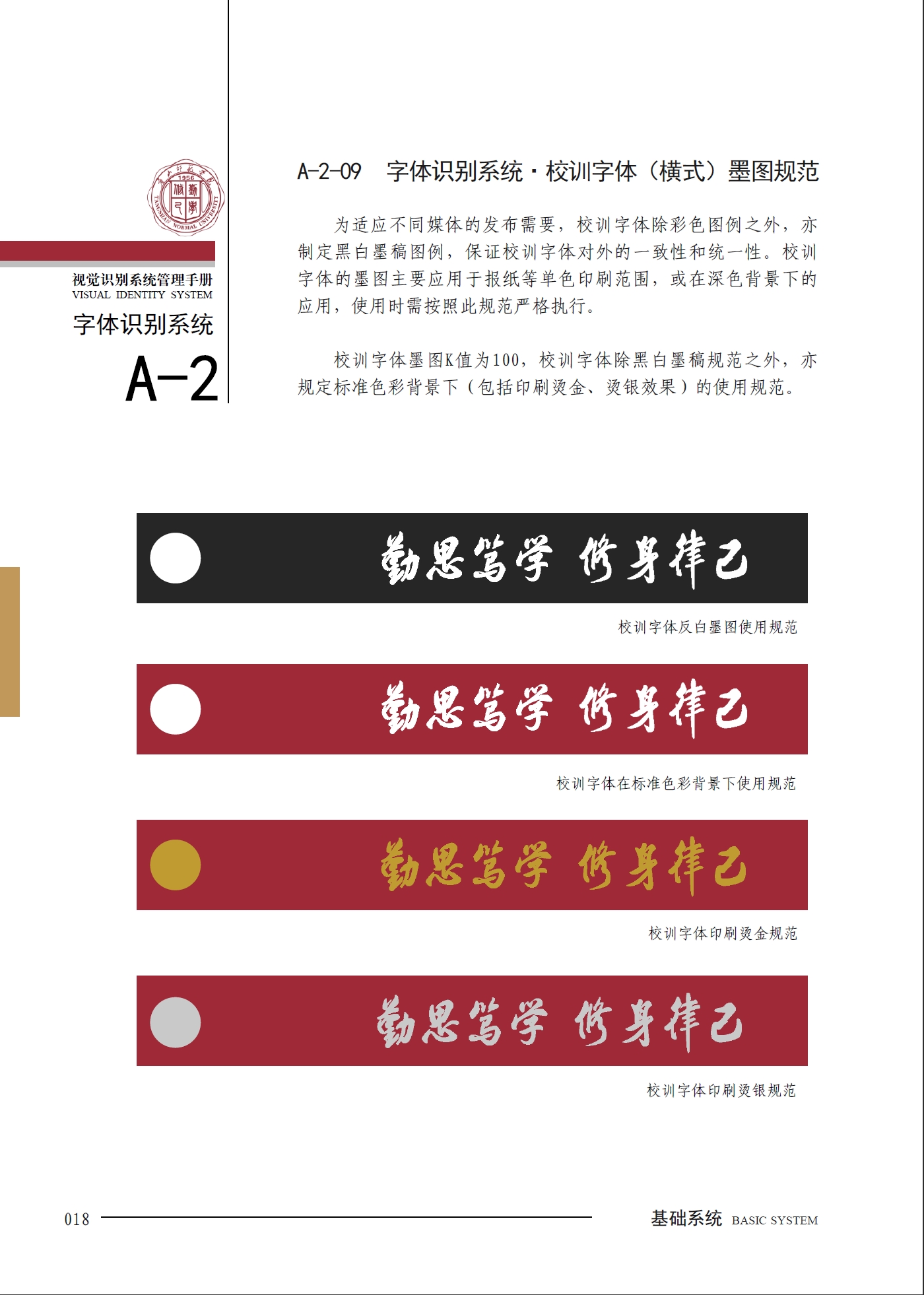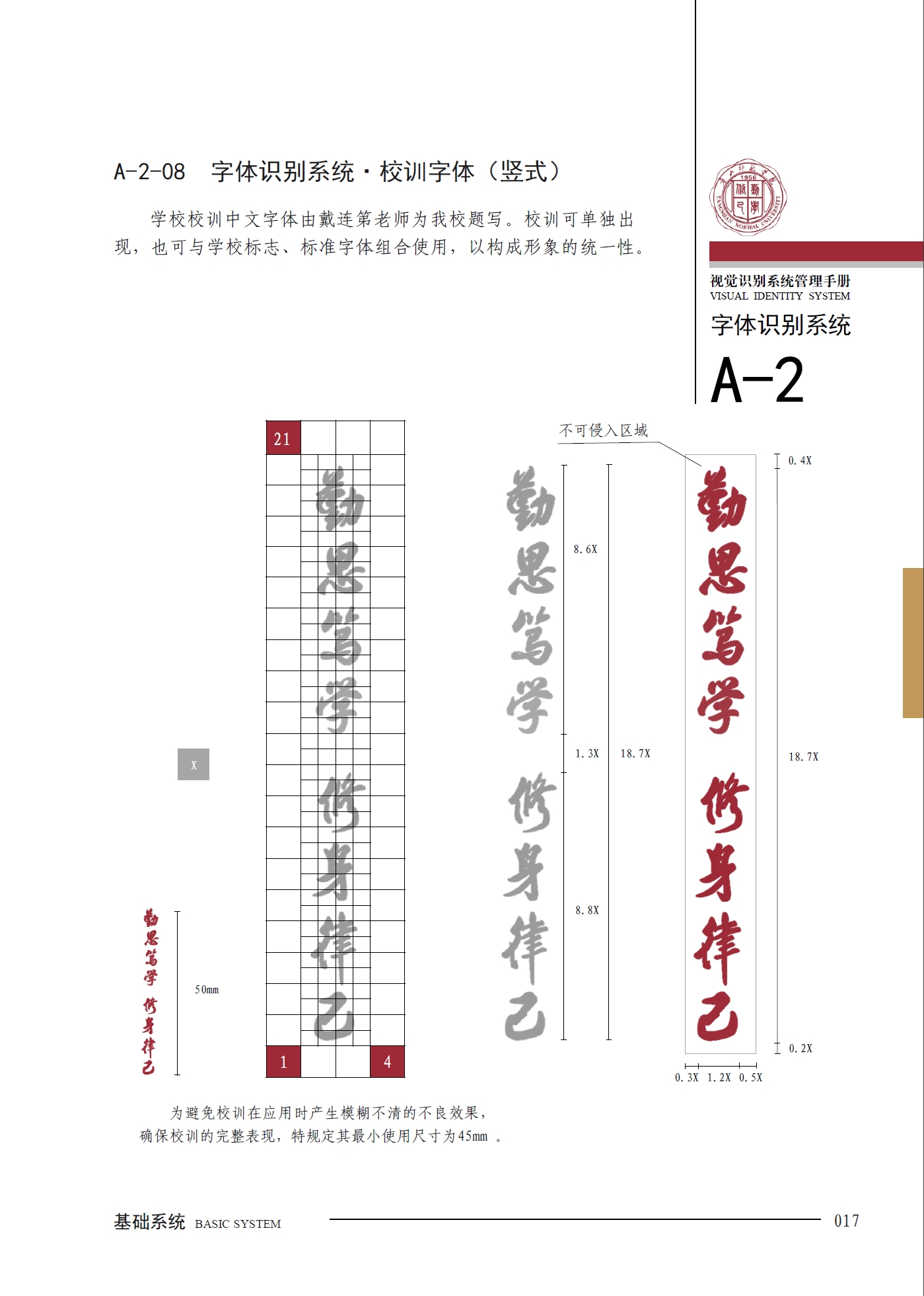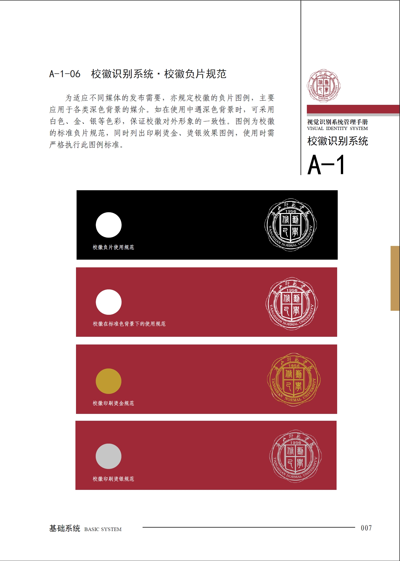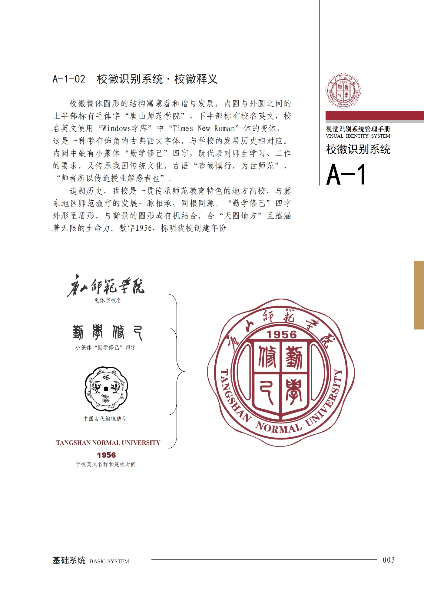 学校建立视觉形象标识系统,规范使用校名、校徽等学校标识。学校的校徽:正中是“勤学修己”四个篆书,正上方边框内是数字“1956”,圆形边框内是中英文校名。