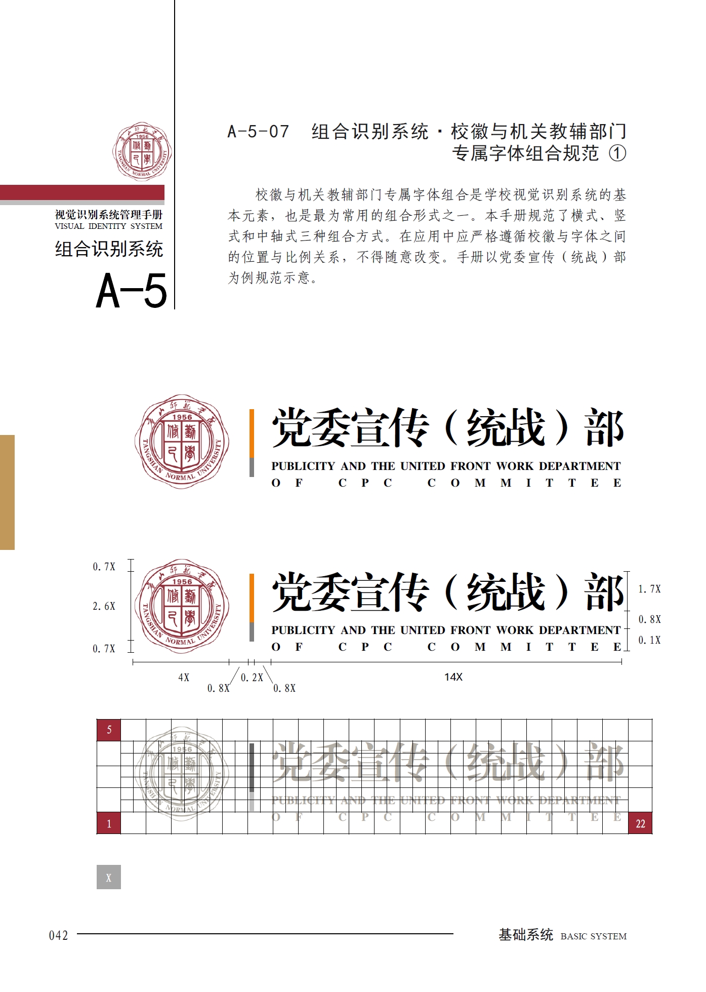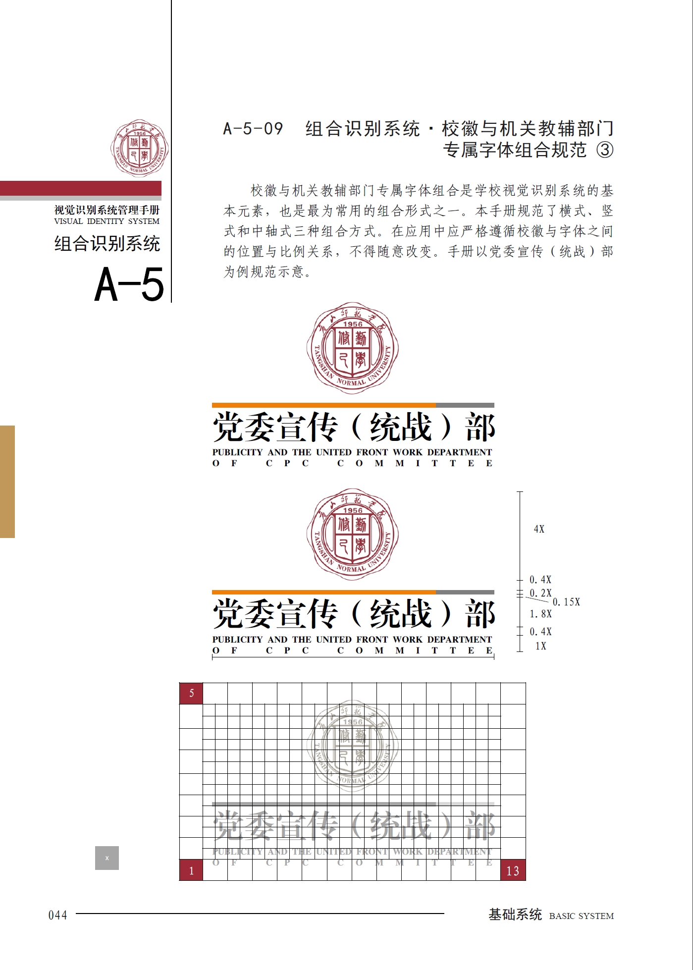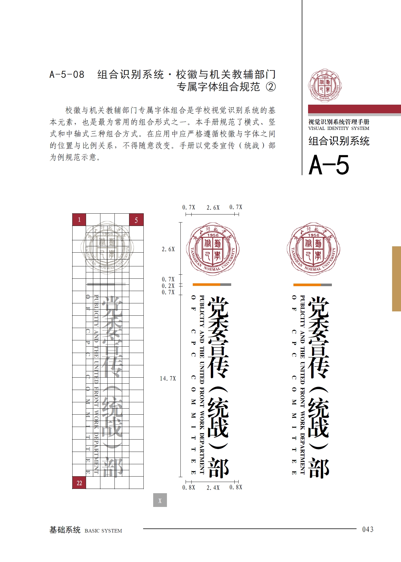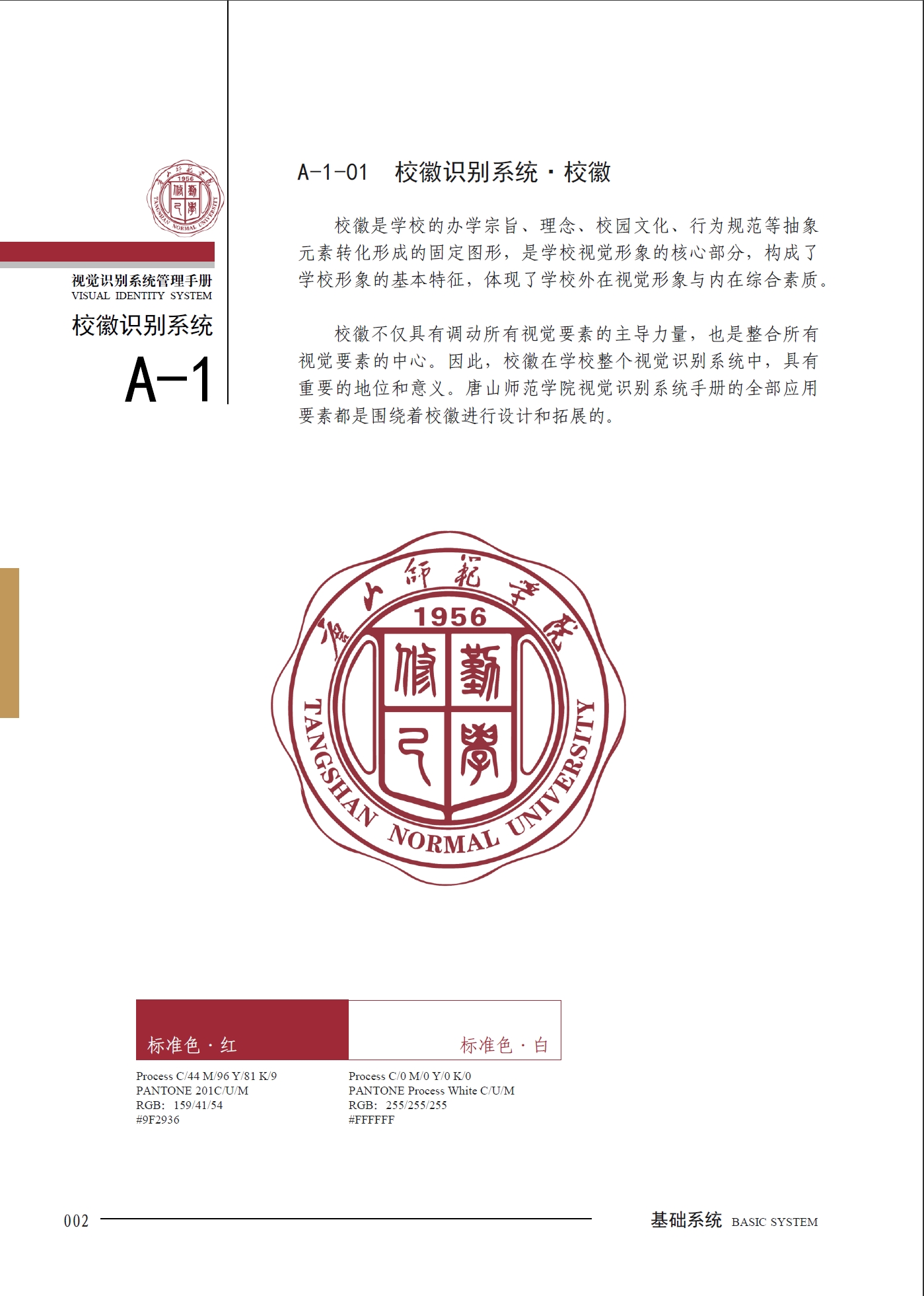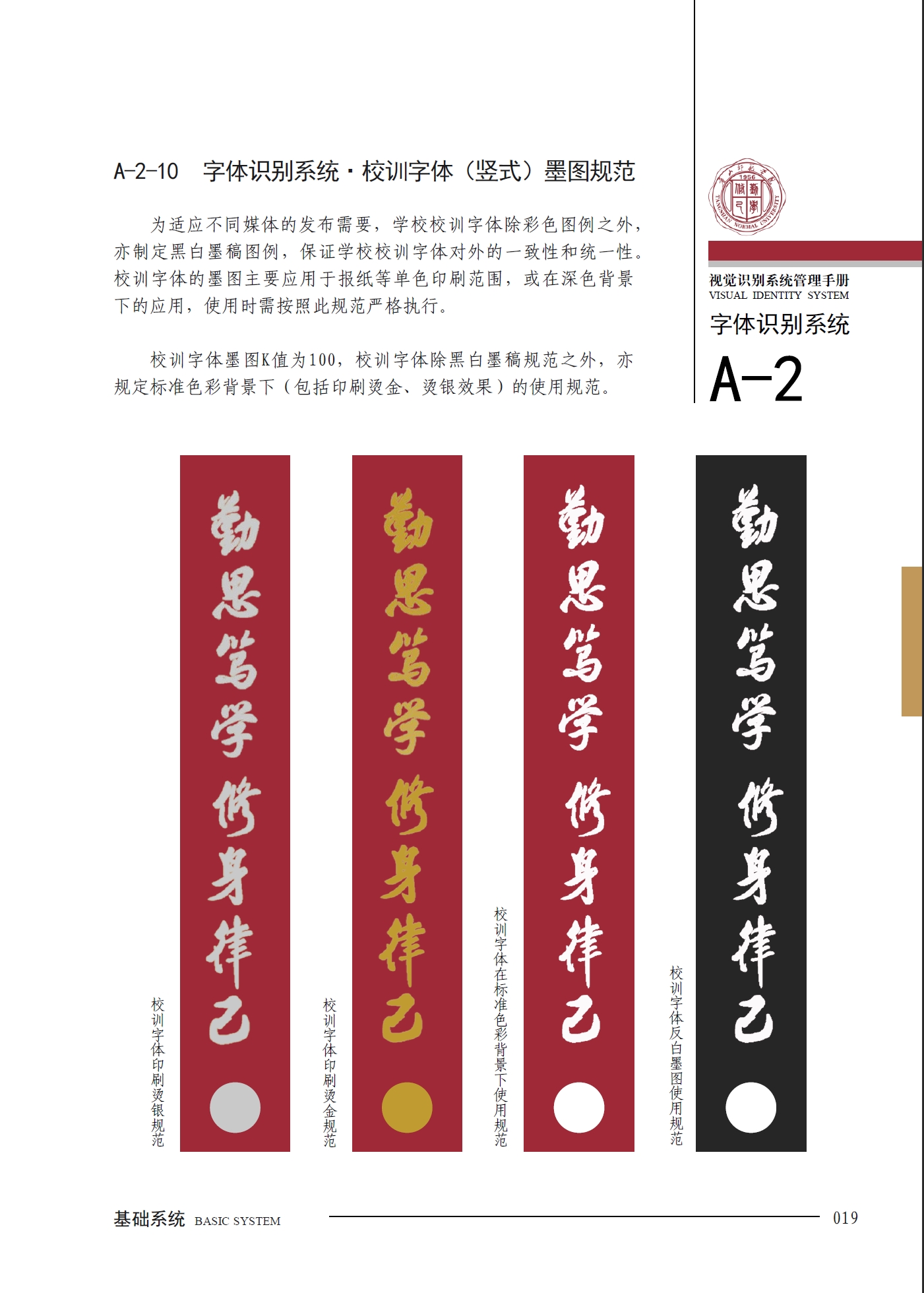 学校建立视觉形象标识系统,规范使用校名、校徽等学校标识。学校的校徽:正中是“勤学修己”四个篆书,正上方边框内是数字“1956”,圆形边框内是中英文校名。